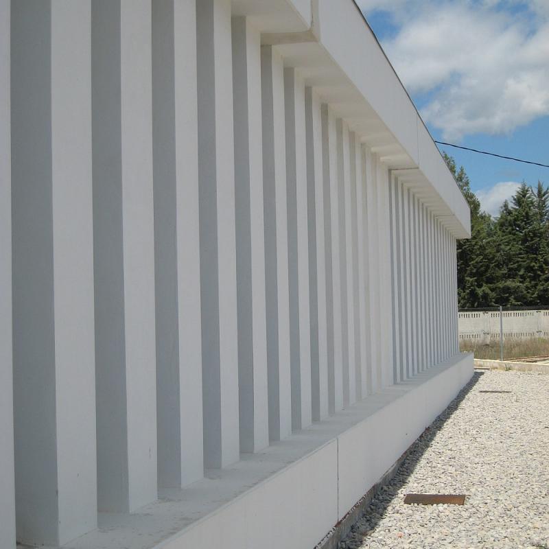 Dans un environnement sans références architecturales, un ensemble de volumes clairs et facilement identifiables est créé pour générer une référence urbaine à l'entrée de la commune. Il s'agit d'un petit auditorium municipal principalement pour l'audition de concerts de petits groupes, réalisé avec très peu de budget et par phase annuelle. Les systèmes de construction choisis sont les éléments préfabriqués, les plus durables et efficaces