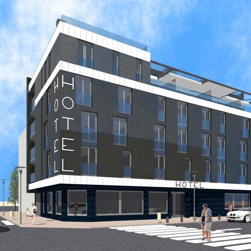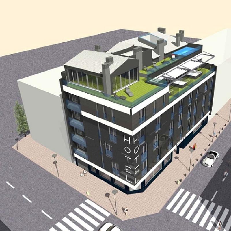 Sobre una estructura existente en la que había previsto realizar un edificio de viviendas se solicitó redistribuir y reordenar las fachadas y reconvertirlo en Hotel de 4 estrellas. Respetando la estructura ejecutada se realiza un edificio elegante y con personalidad propia en un entorno urbano anónimo. En la planta baja se ubicaron los servicios comunes y la superior disponía de suites con jacuzzis exteriores. La composición exterior es uniforme y marcando la dirección horizontal de la parcela