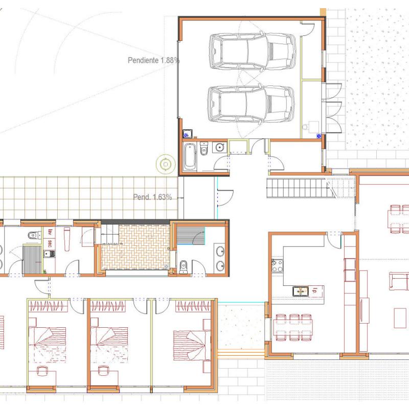 Esta vivienda esta situada en el campo , rodeado de invernaderos y paisajes de flores de los propietarios. Se orienta a Sur-Este para aprovechar las vistas del mar y el asoleamiento favorable y se cierra a la orientación oeste y Nor-oeste, de vientos y vistas poco favorables. Programa funcional dividido formalmente en zona de día y de noche